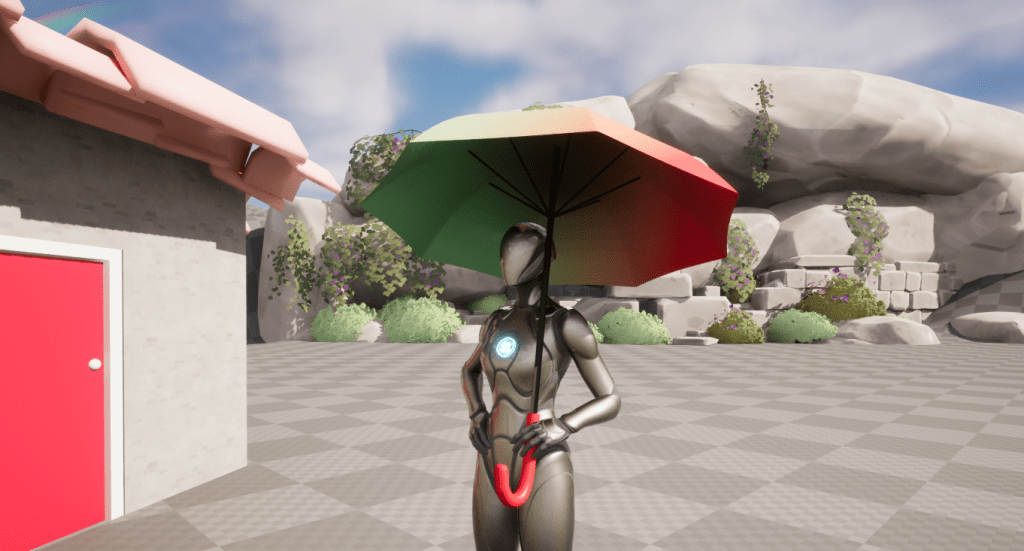 Then I quickly threw a pose together using Control Rig for the character to hold the Umbrella and here we go!