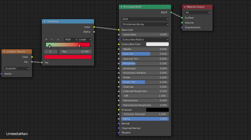 It was getting close to 3am so I decided to just go with solid colours and patterns for the Umbrella materials instead of making some proper textures.