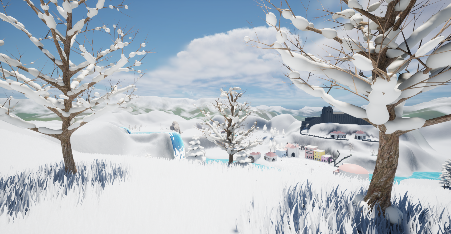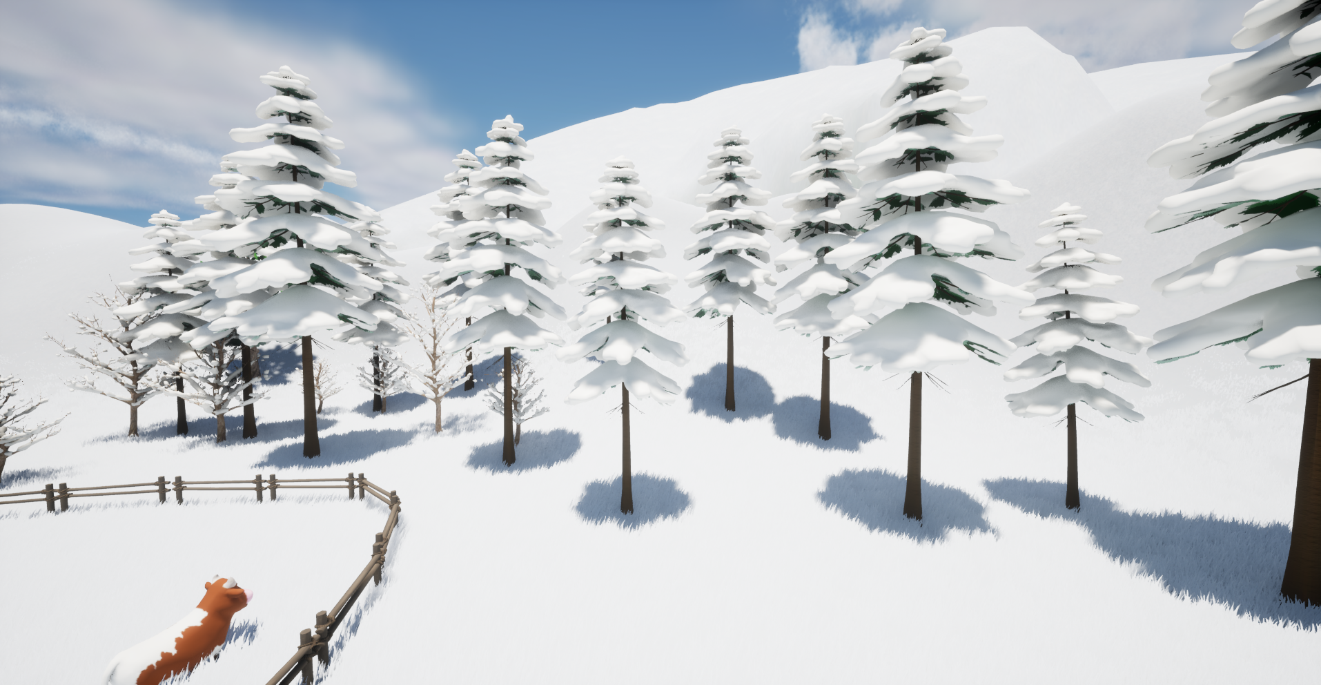 βοΈIn Winter, we use a leaf-free mesh with snow on top that is per default hidden but will get dithered in as it snows in game.