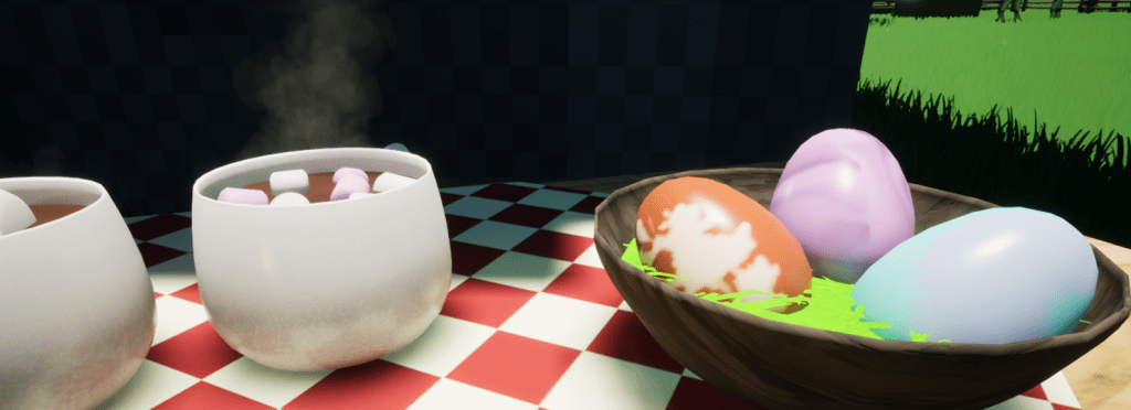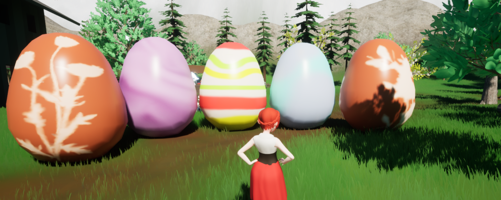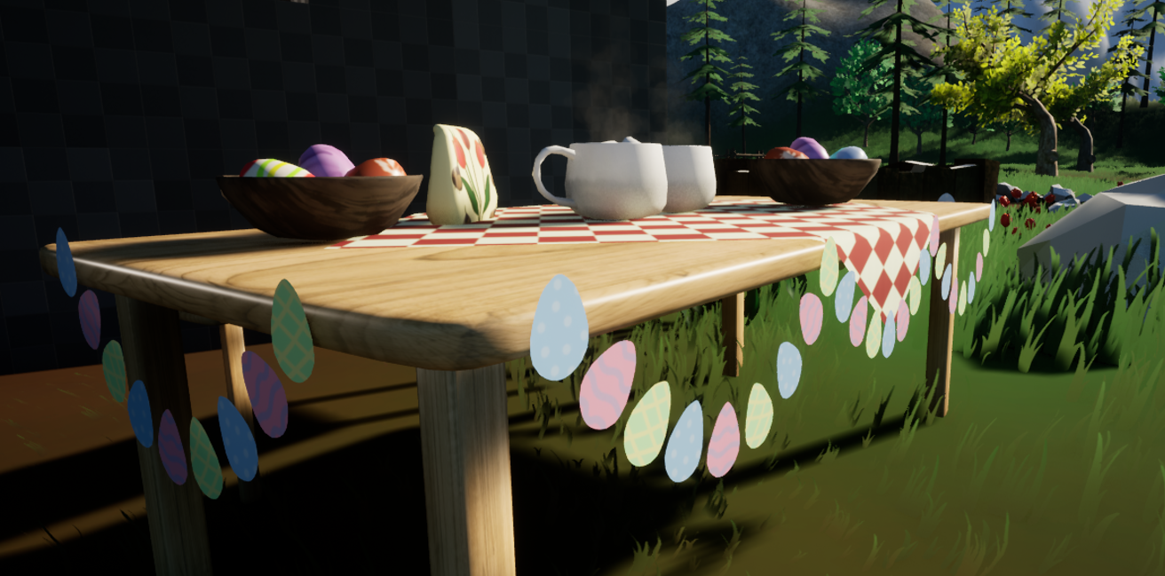 We got some fun easter buntings going on to decorate our lil ingame house.