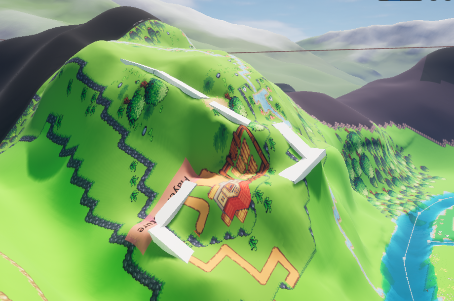 For this, I also utilizes some helper meshes to make it much easier to form the landscape into a walkable slope. This looks something like this: