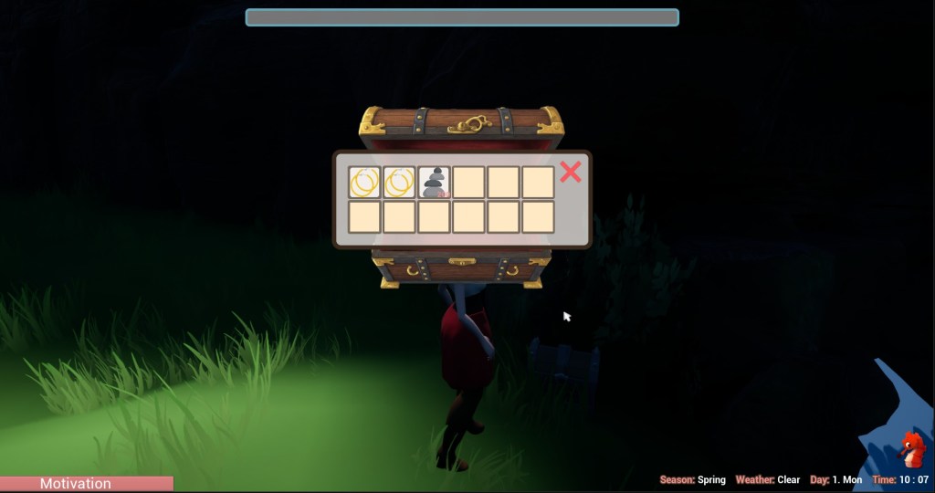 So, I have added the concept of chests and containers in general that the player can open and loot, which will also come in handy later on when you can use chests on your homestead to store items that you don’t want to clog your inventory with.