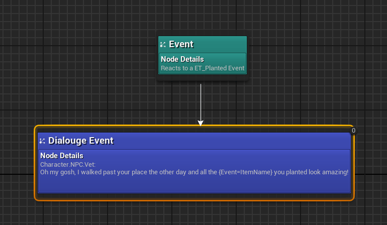 These events are not only used for NPCs and their reactions, but can be used for many other systems – a specific one I want to implement is a ‘Last Time on…’ System that shows you what you did during your last play session.